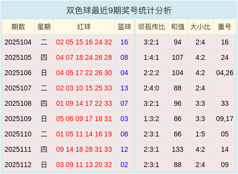 上期开奖数据中得知邻孤传比为2:3:1,大小比为2:4,开出1枚重号09,和值数据为88。