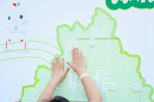除了病笃刺激的竞技比拼,现场还竖立了柔柔满满的“湾区共绘 公益同业” 艺术安设。每位参与者领取一块印有“职守”“公信”“公益”等字样的拼图,协力拼就一幅完好的公益画卷。这就像每一张体育彩票集聚成公益暖流,每一份微光般的善意与担当,也终将凝合成照亮社会的灿艳爽直。
