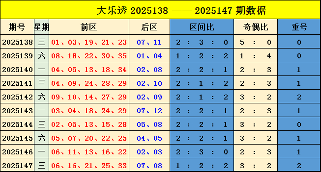 后辞别析:上期开出大大奇偶组合07、08,前十期后区大小比为11:9,大数号码相对热出,其中小大组合占4期。本期预测小大组合出现,后区保举号码03、08。
