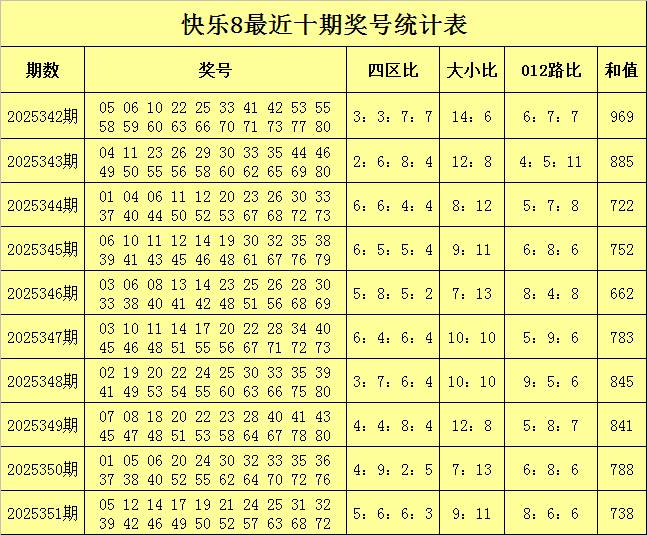 福彩情景8第2025351期开奖转头:05 12 14 17 19 21 24 25 31 32 39 42 46 49 50 52 57 63 68 72,其中奖号四区比为5:6:6:3。